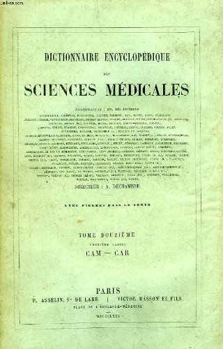 Read DICTIONNAIRE ENCYCLOPEDIQUE DES SCIENCES MEDICALES, TOME XII, 1re PARTIE, CAM-CAR PDF